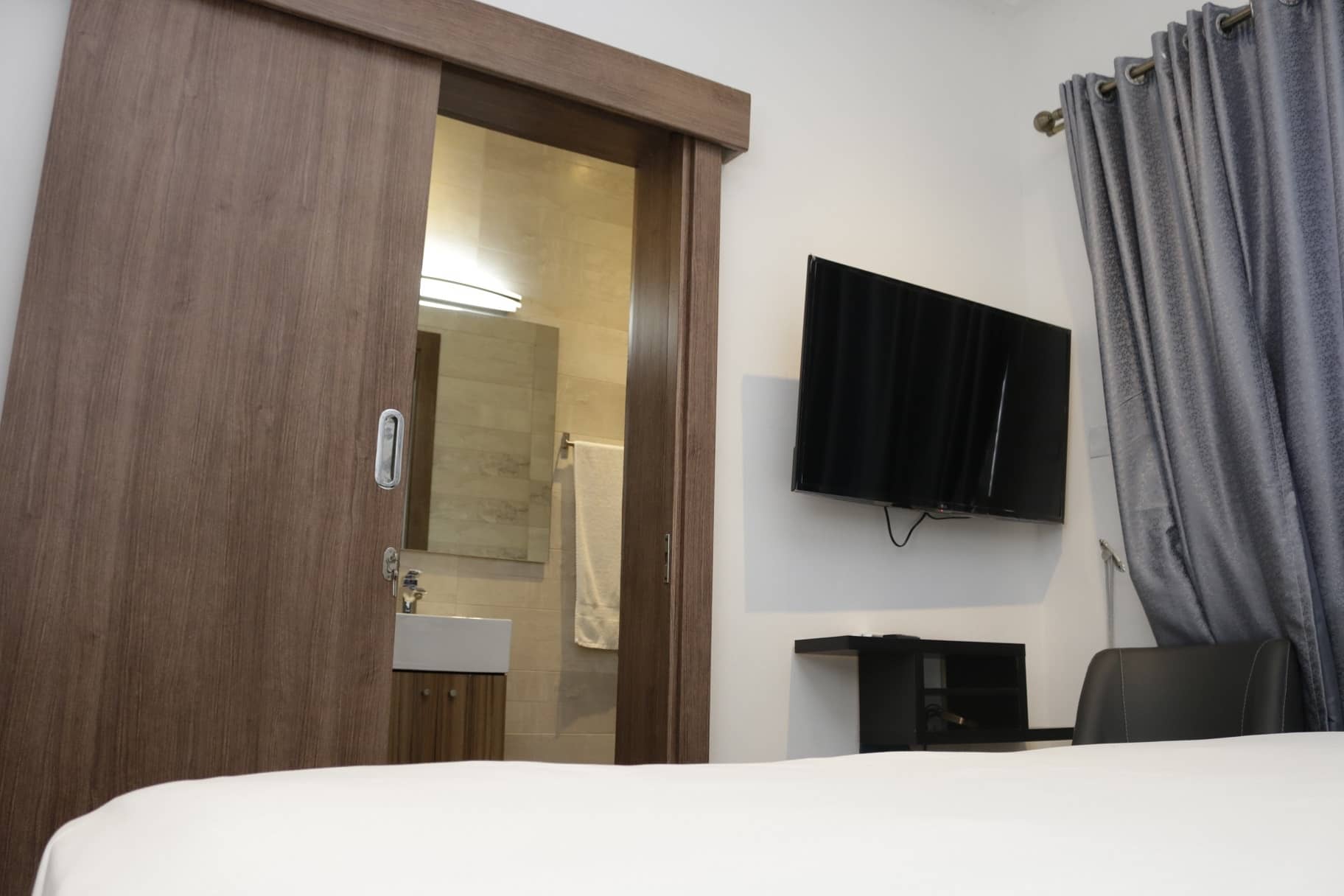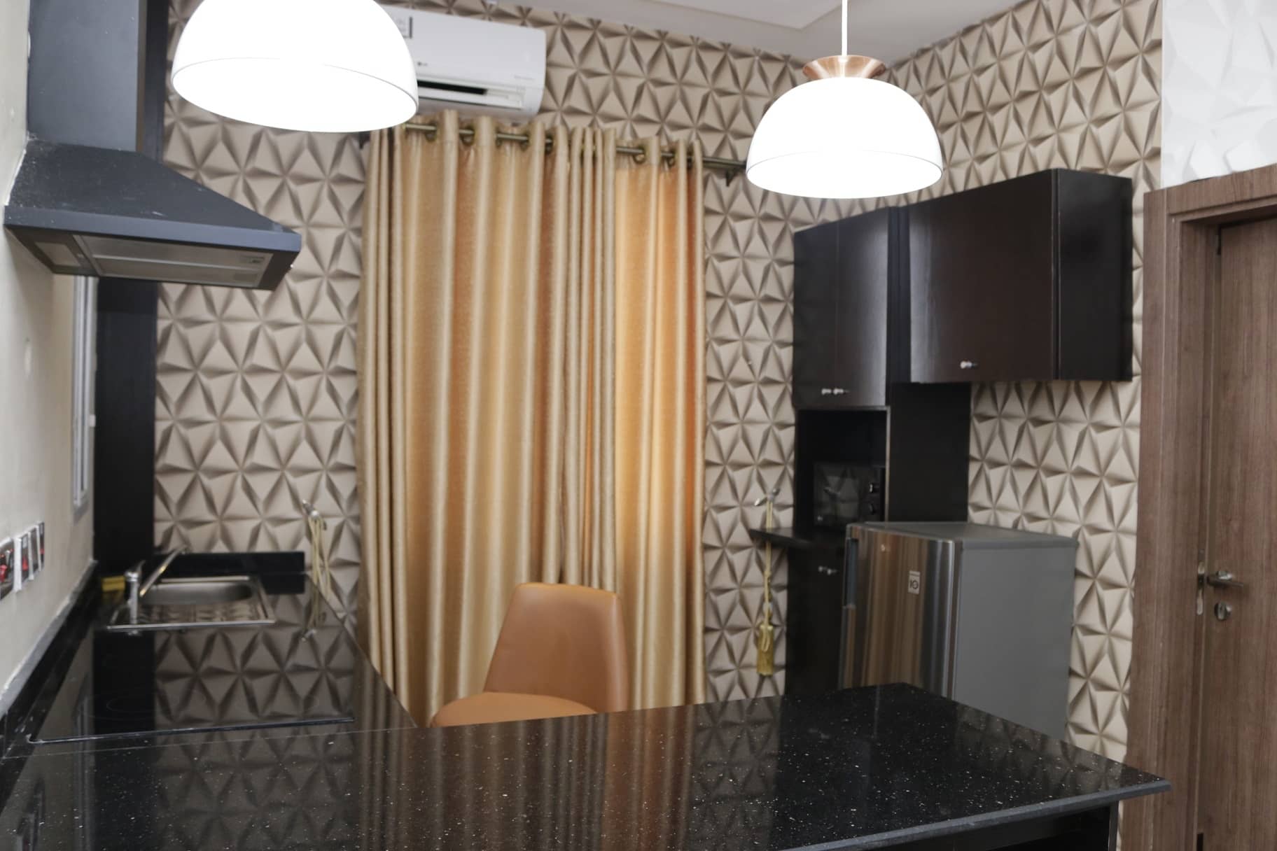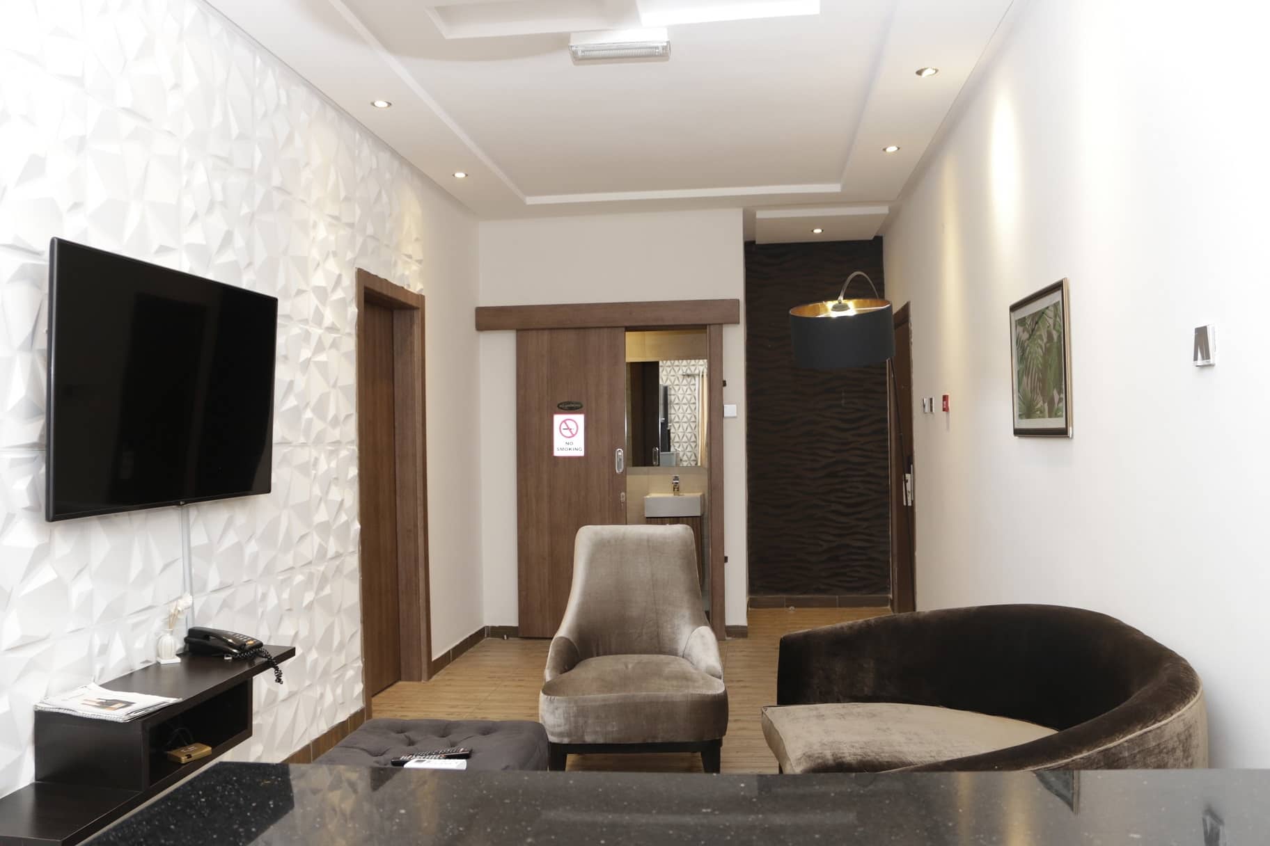 Our two bedroom apartment features a lush living room with sittings for a maximum of 4(four) guest and two separate bathrooms with Kingsized Comfy Beds, Sumptuous Linens, En-suite Bathrooms with Guest Toiletries, Water Heater, Fully Fitted Kitchenette, Refrigerator, Satellite-TV, Guest Toilet and a Daily Cleaning Service. This apartment is best for a family getaway or business partners or friends sharing. Children between the ages of 2 - 12yrs stay free when staying with parent
